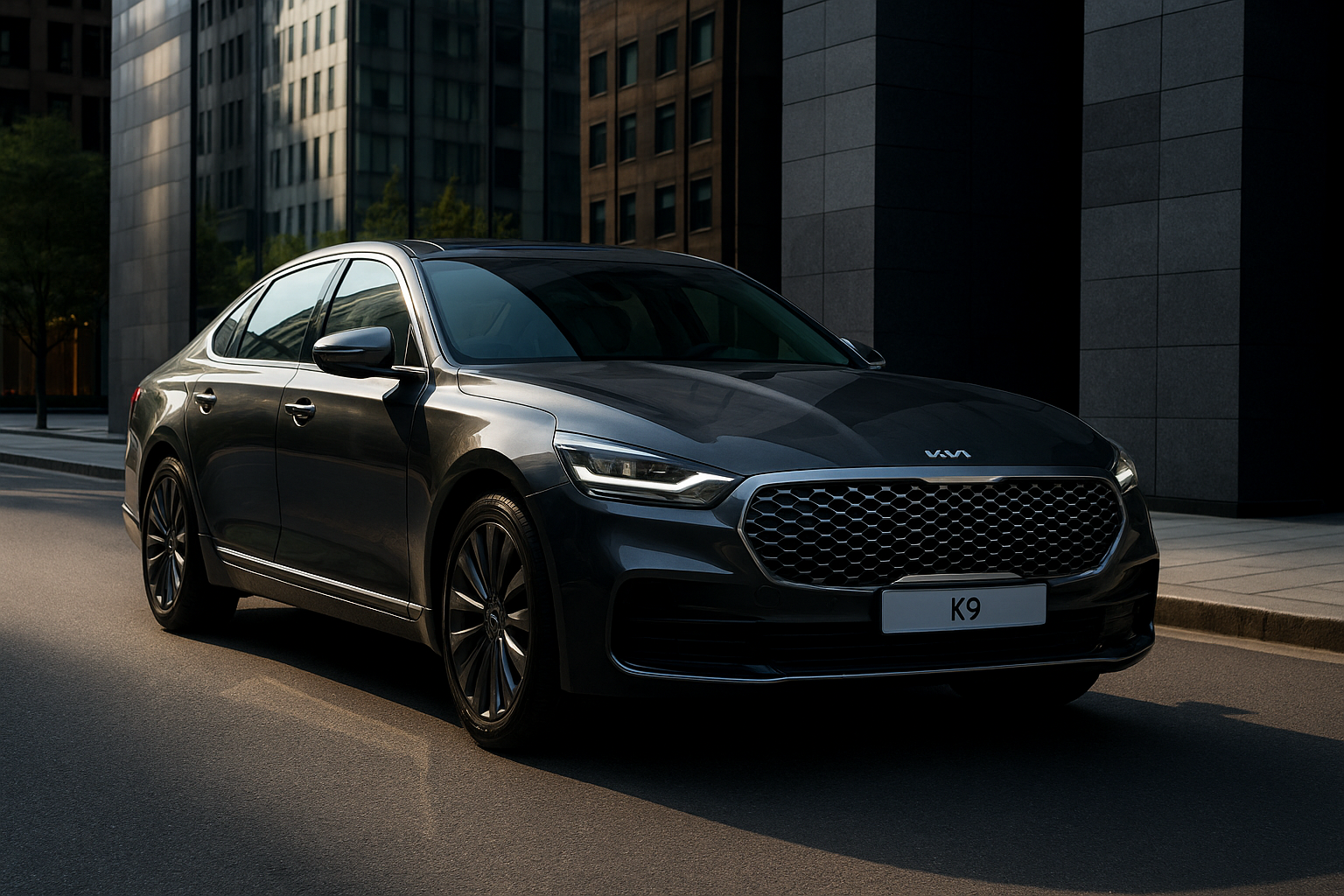 K9은 전면부의 대형 라디에이터 그릴과 세련된 LED 헤드램프가 눈길을 사로잡습니다. 측면은 유려한 라인과 크롬 포인트로 고급스러움을 더하며, 후면은 수평형 리어램프와 와이드 한 비율로 안정감을 줍니다. 차체 크기는 전장 5,120mm, 전폭 1,915mm, 전고 1,490mm, 휠베이스 3,105mm로 동급 최고 수준의 공간감을 자랑합니다.